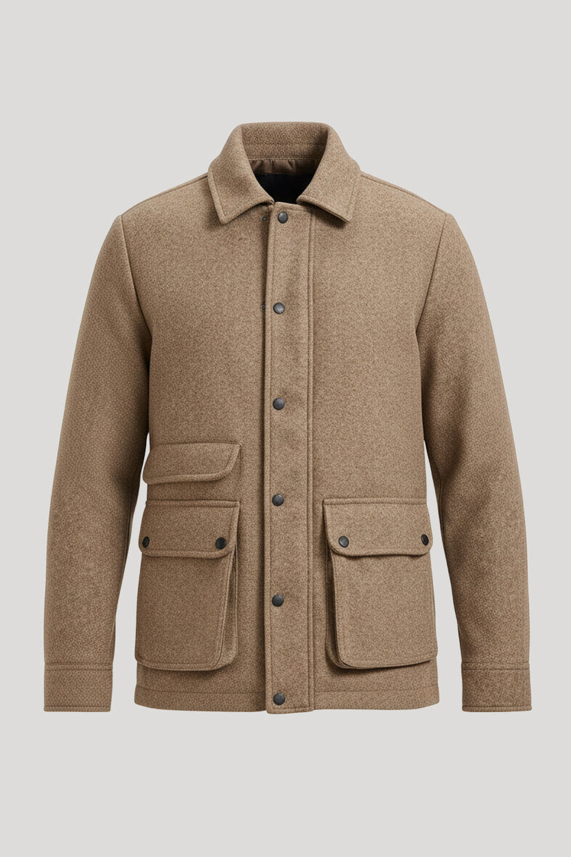 • Heavyweight Vegan Wool: The 380GSM polyester shell provides the structural integrity and thermal warmth of heavy melton wool with enhanced wind resistance and easy-care durability.