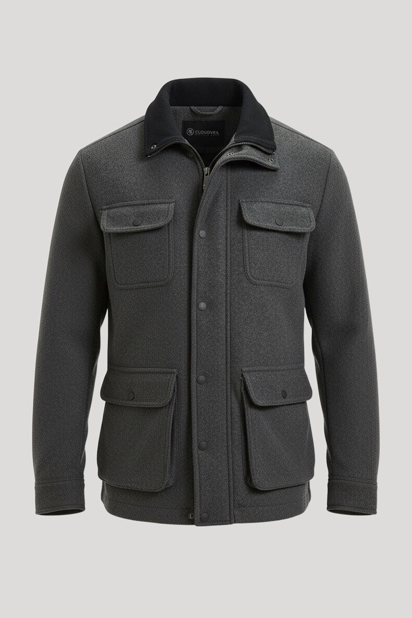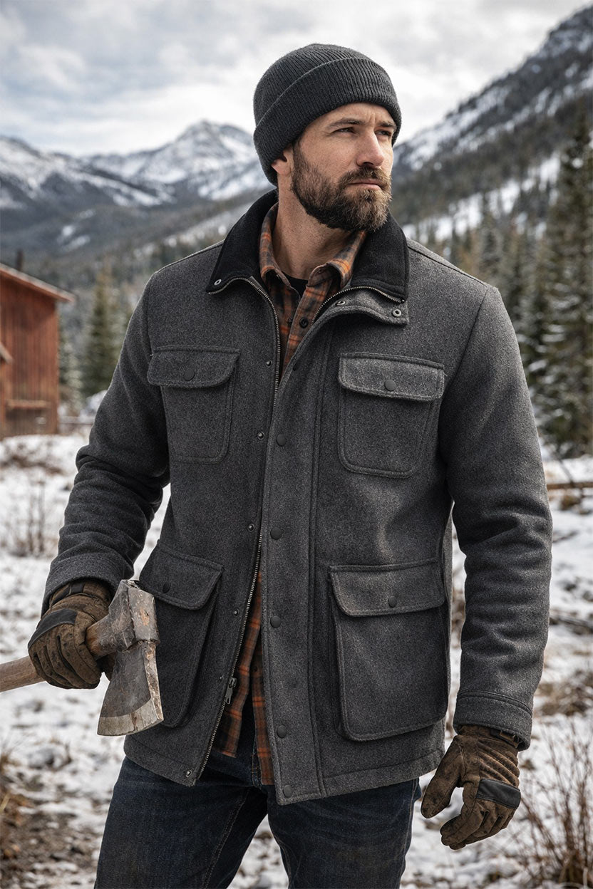 The Park City Vegan Wool Barn Jacket is the ultimate companion for rugged outdoor work and mountain lifestyles. Combining the sophisticated look of 380GSM vegan wool with a technical, heat-trapping quilted lining, this coat is built for the modern outdoorsman who demands maximum utility and timeless design. Engineered with a double-closure system and reinforced ripstop interior, it provides a heavy-duty shield against the elements without sacrificing a polished silhouette.